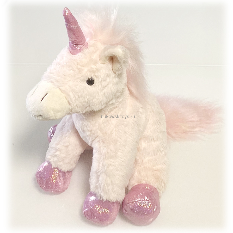 Большой мягкий сказочный единорожек, с розовыми гривой и копытцами, очень приятный на ощупь