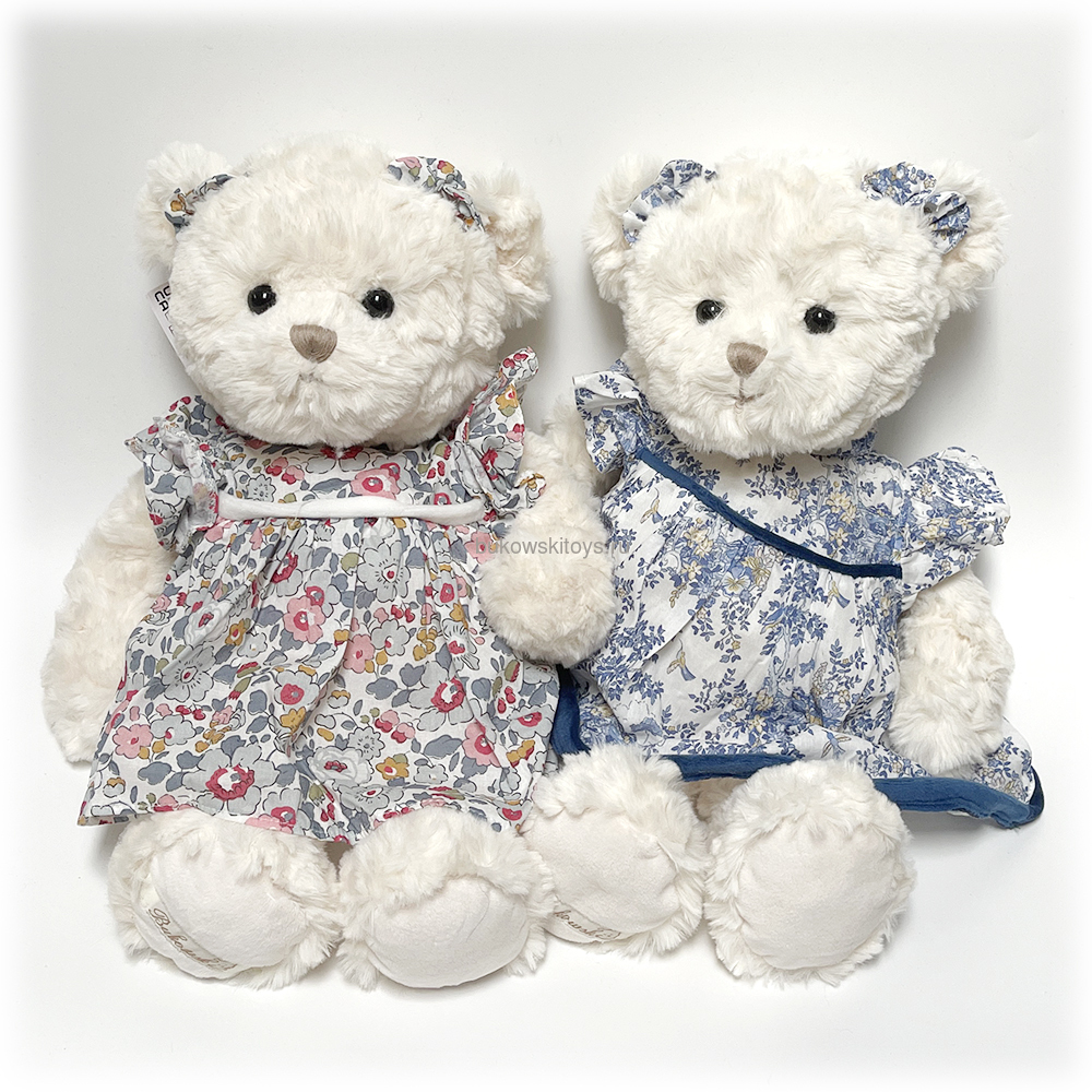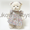 Большой белый пушистый мишка-девочка в нарядном летнем платьице. После упаковки игрушка нуждается в расчесывании, чтобы снять примятость меха и лишние волоски