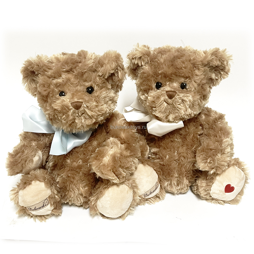 Большой пушистый коричневый мишка-мальчик с бантом на шее, очень дружелюбный на вид и приятный на ощупь, после упаковки нуждается в встряхивании и расчесывании.