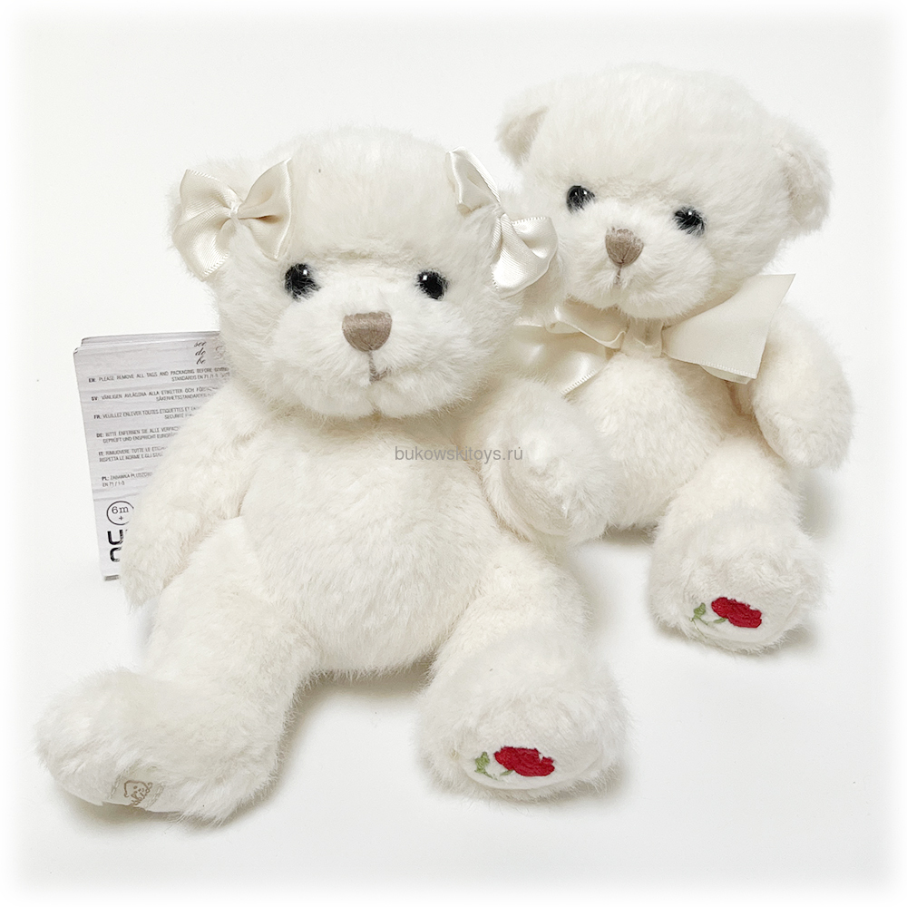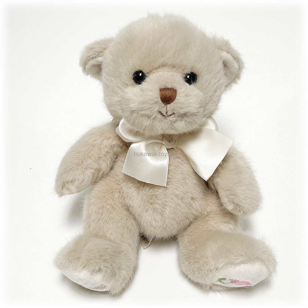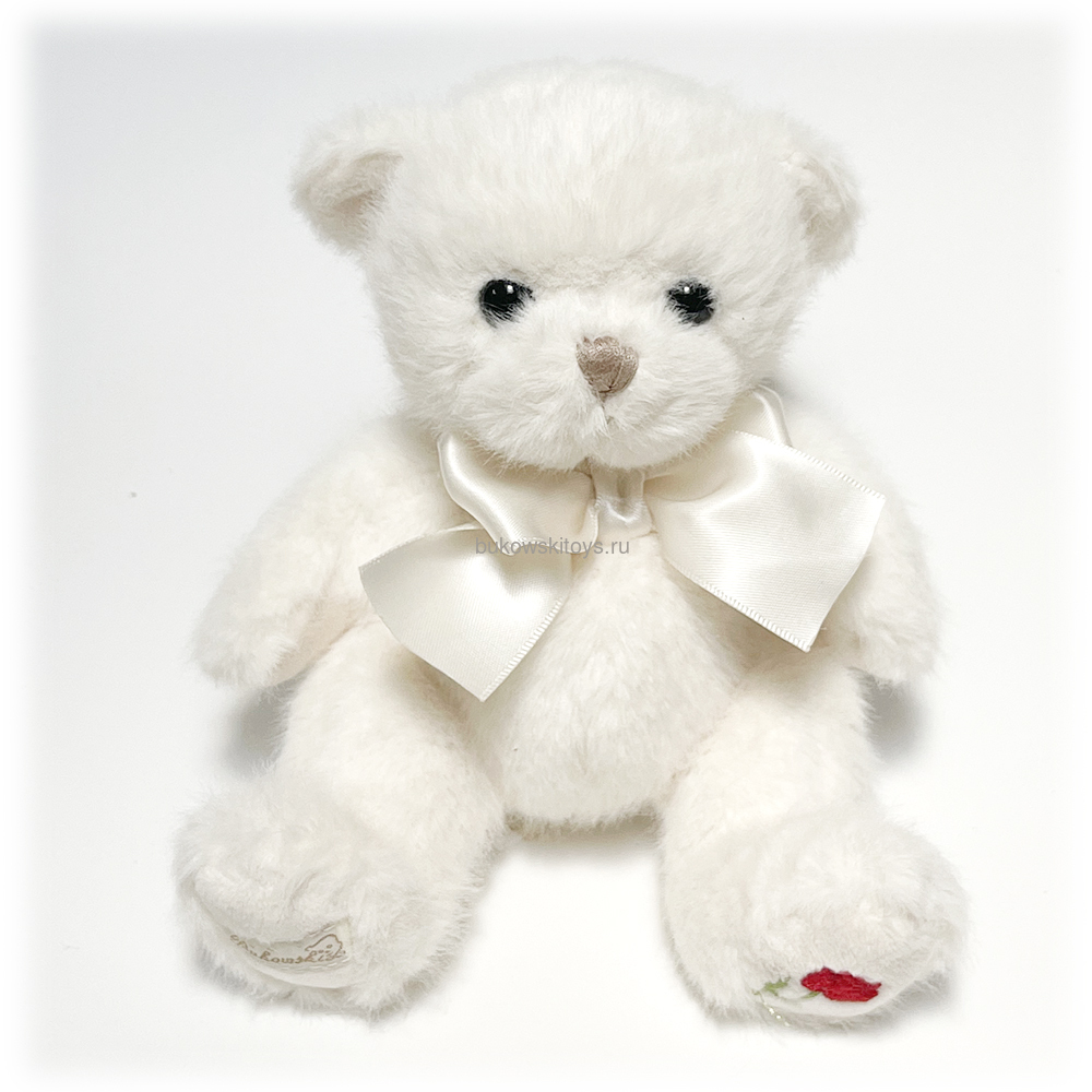 Маленький белый мишка ,очень приятный на ощупь, на лапке есть вышивка в виде цветочка, внутри имеются полипропиленовый шарики для развития мелкой моторики