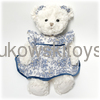 Большой белый пушистый мишка-девочка в нарядном летнем платьице. После упаковки игрушка нуждается в расчесывании, чтобы снять примятость меха и лишние волоски