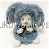 очень мягкий небольшой мишка-заяц в пушистом зимнем костюмчике сочного синего цвета, капюшон снимается