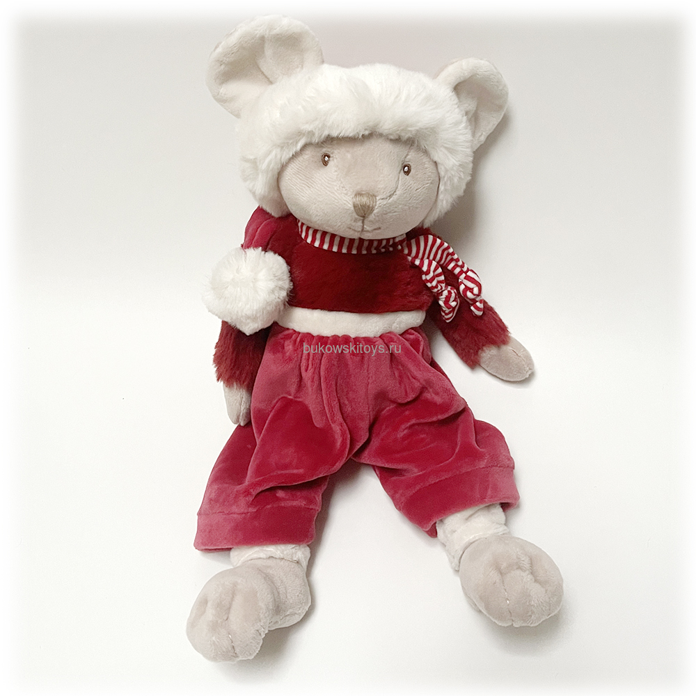Праздничный рождественский мышонок в яркой одежде Санта-Клауса.