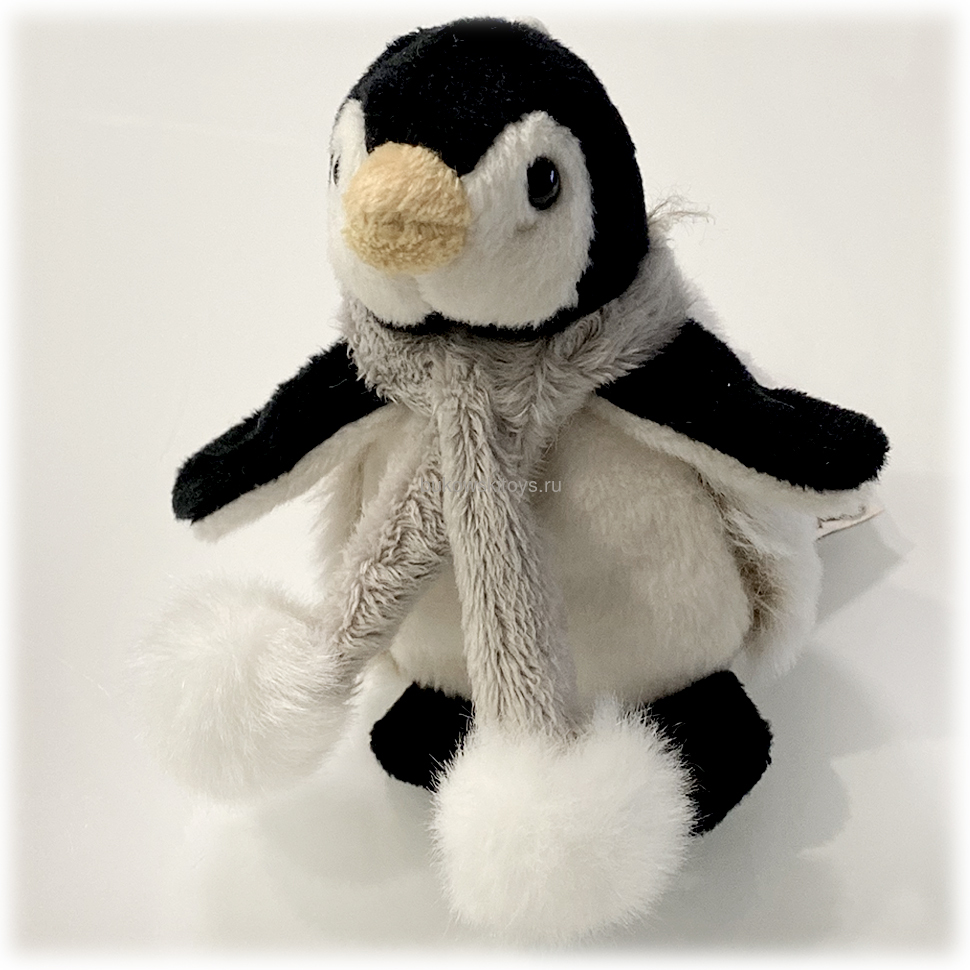 Маленький пушистый пингвин-брелок в шарфике с пушистыми балабончиками