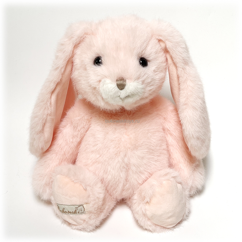 Милый заяц среднего размера, очень приятный на ощупь, внутри имеются полипропиленовый шарики для развития мелкой моторики