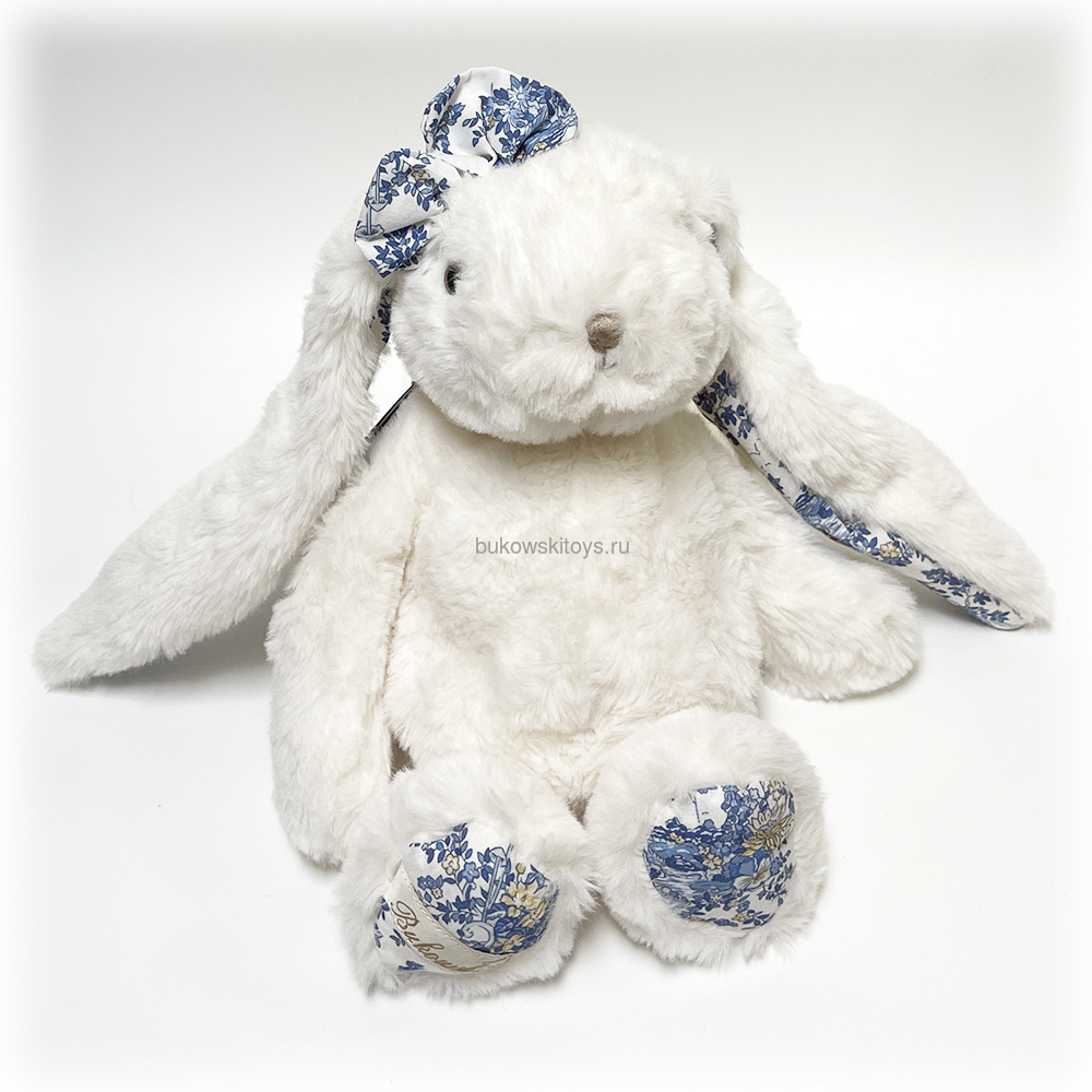 Симпатичный пушистый заяц среднего размера с цветастыми вставками на ушах и лапках