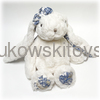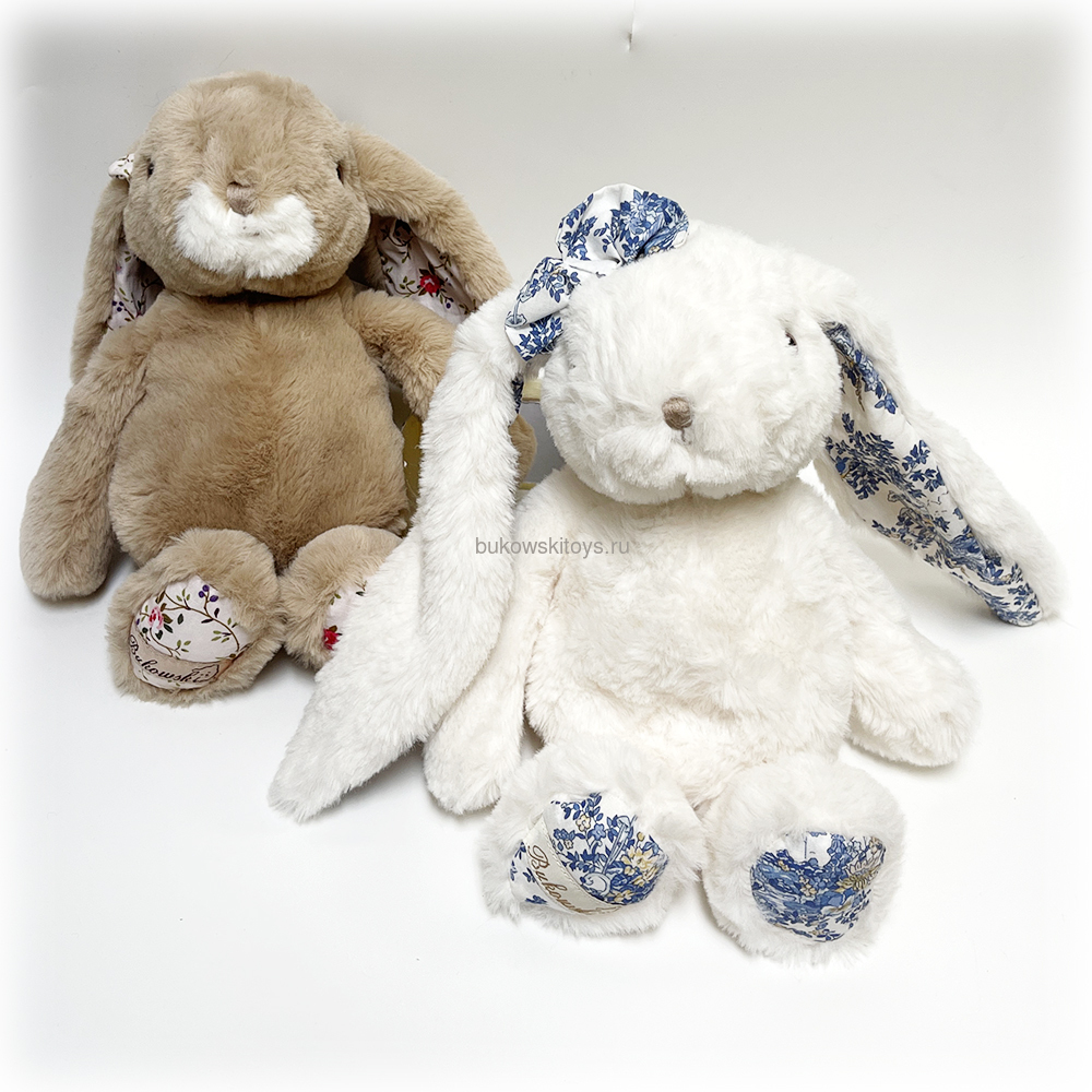 Симпатичный пушистый заяц среднего размера с цветастыми вставками на ушах и лапках
